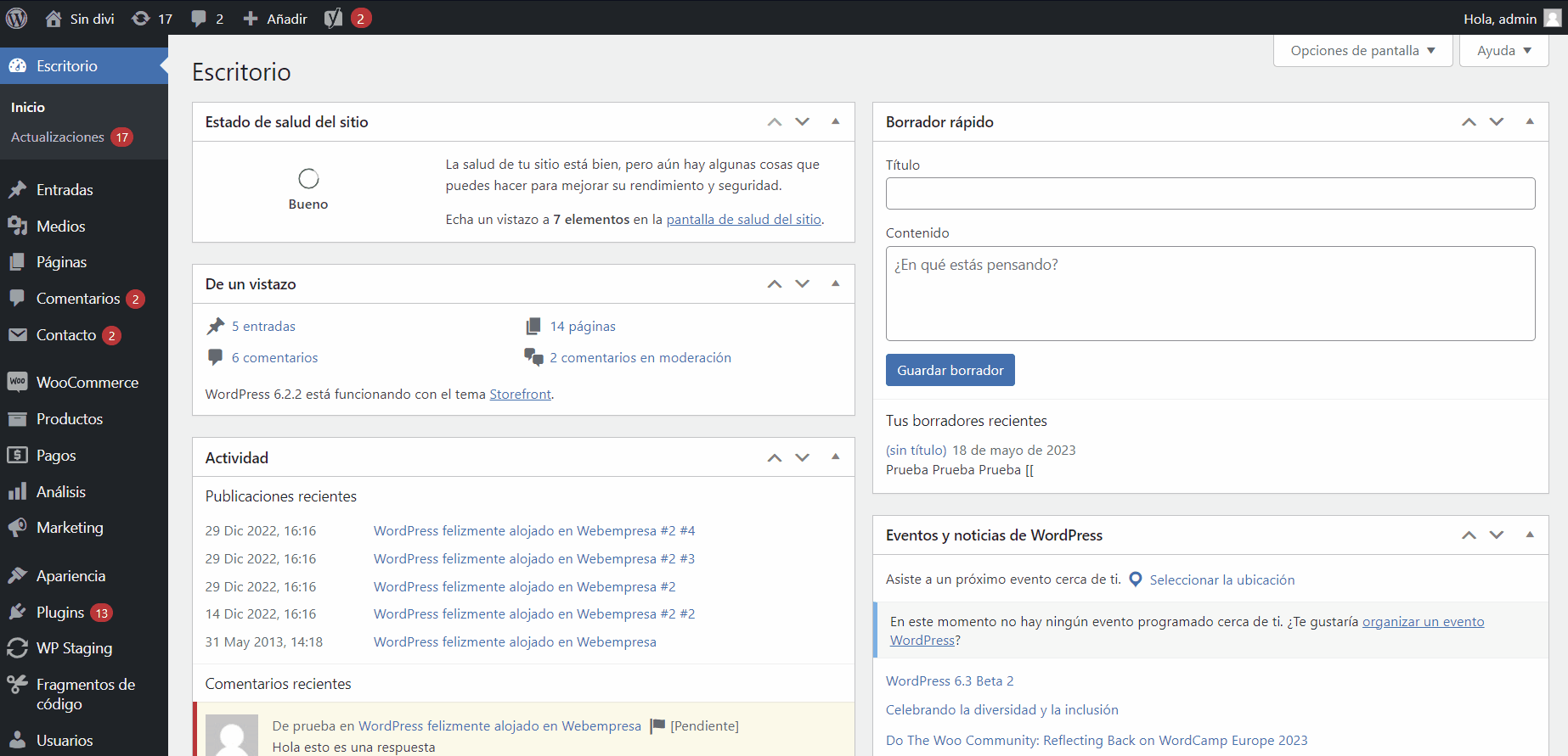 De la misma forma, no solo aplica para páginas ya hechas, también podemos crear un entorno de pruebas con una instalación de WordPress nueva y en blanco para probar otro tipo de plugins o cualquier cosa que necesitemos validar de un entorno limpio de WordPress.