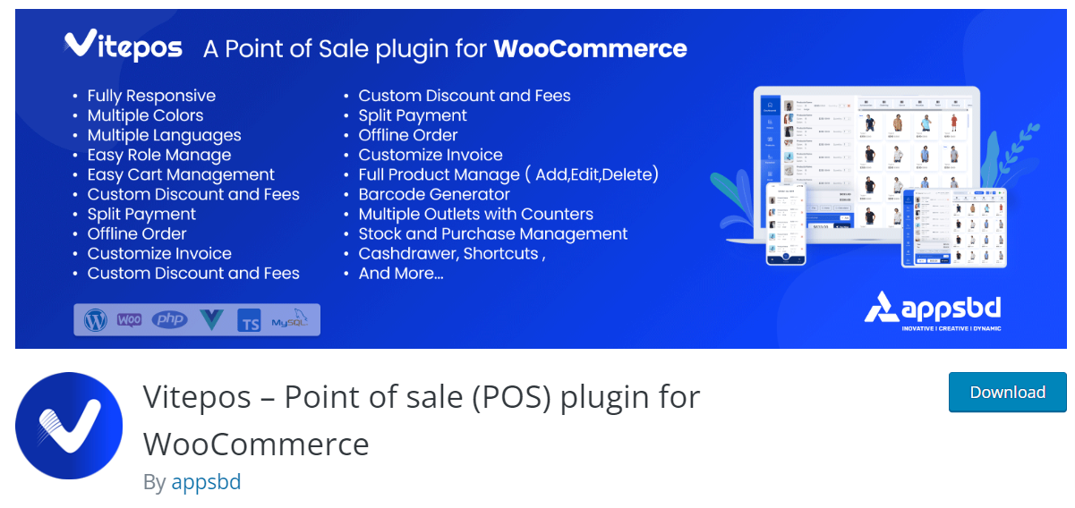 El segundo plugin que vamos a poder ver es el plugin de Vitepos Pro es una buena opción en caso de que necesitemos. Este plugin de WooCommerce nos permite gestionar nuestro inventario, ventas y clientes desde el sitio web de WordPress, convirtiéndolo en un sistema de punto de venta (POS) completo.
