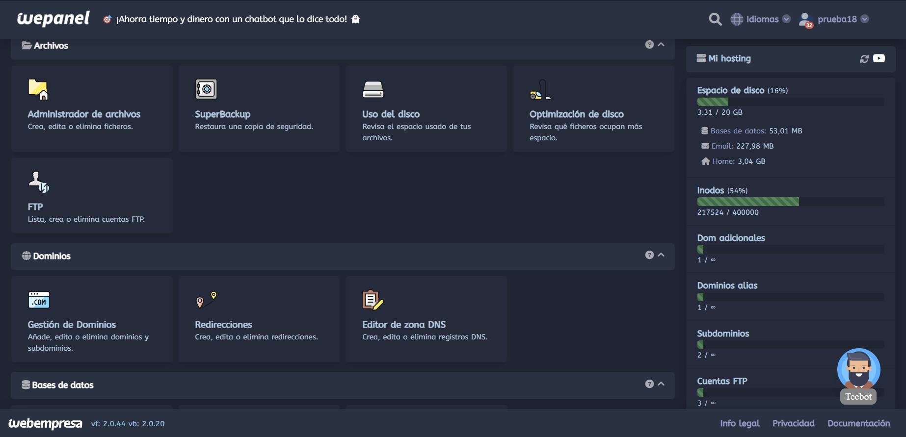 Por ejemplo, si estamos utilizando nuestro wepanel, podemos iniciar sesión en nuestra cuenta y navegar hasta la sección de uso del disco. Aquí, deberíamos poder ver cuánto espacio en disco estamos utilizando y cuánto nos queda. Si vemos que estamos cerca del límite, es probable que sea el momento de tomar medidas para liberar espacio o considerar la posibilidad de actualizar nuestro plan de alojamiento.