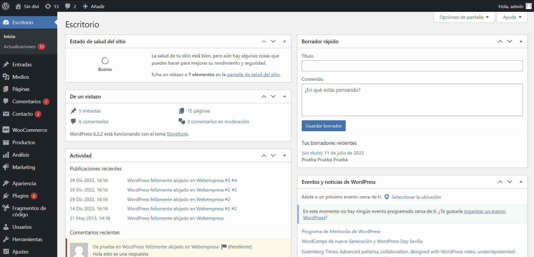 A través del Panel de Administración de WordPress: