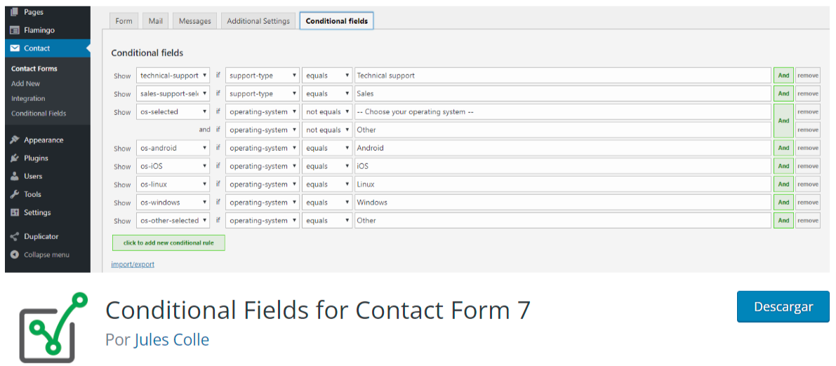 En nuestra exploración de las mejores extensiones para Contact Form 7, no podemos pasar por alto CF7 Conditional Fields. Esta extensión es como un mago en la manga para aquellos que buscan llevar los formularios al siguiente nivel de interactividad y personalización.