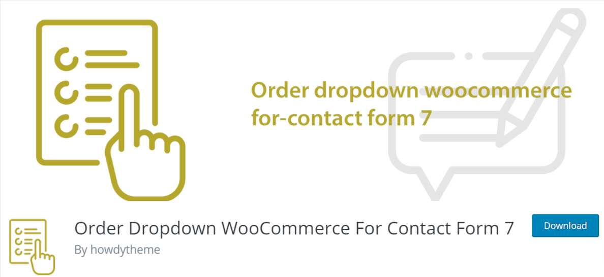 Otra extensión útil para Contact Form 7 es Order Dropdown WooCommerce para Contact Form 7. Esta extensión es en especial útil para los sitios de comercio electrónico que utilizan WooCommerce, ya que permite crear un campo de lista desplegable con los pedidos del usuario actual en los formularios de contacto.