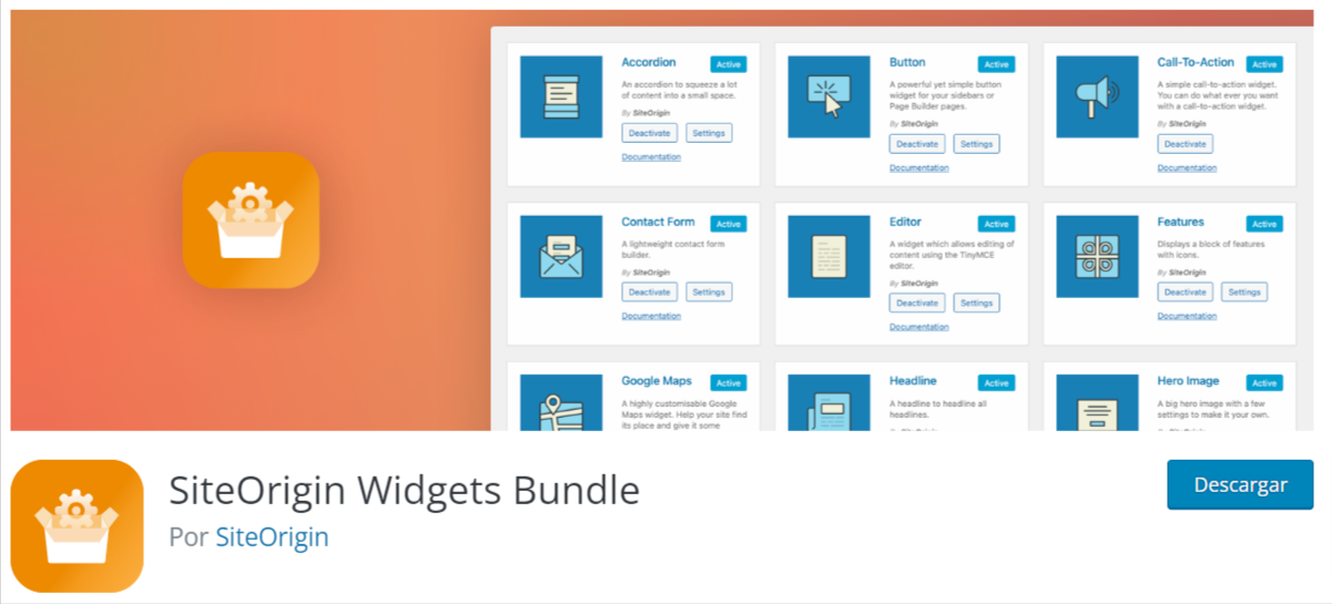 Si estamos buscando una alternativa gratuita a Elementor Pro que sea también poderosa, el plugin SiteOrigin Widgets Bundle resulta ser una excelente opción. Este plugin proporciona todos los elementos que necesitamos para construir páginas web modernas, responsivas y atractivas. Con el paquete de widgets, podemos agregar con rapidez y sin esfuerzo botones, sliders, mapas interactivos en WordPress, imágenes, carruseles, características, iconos y mucho más.