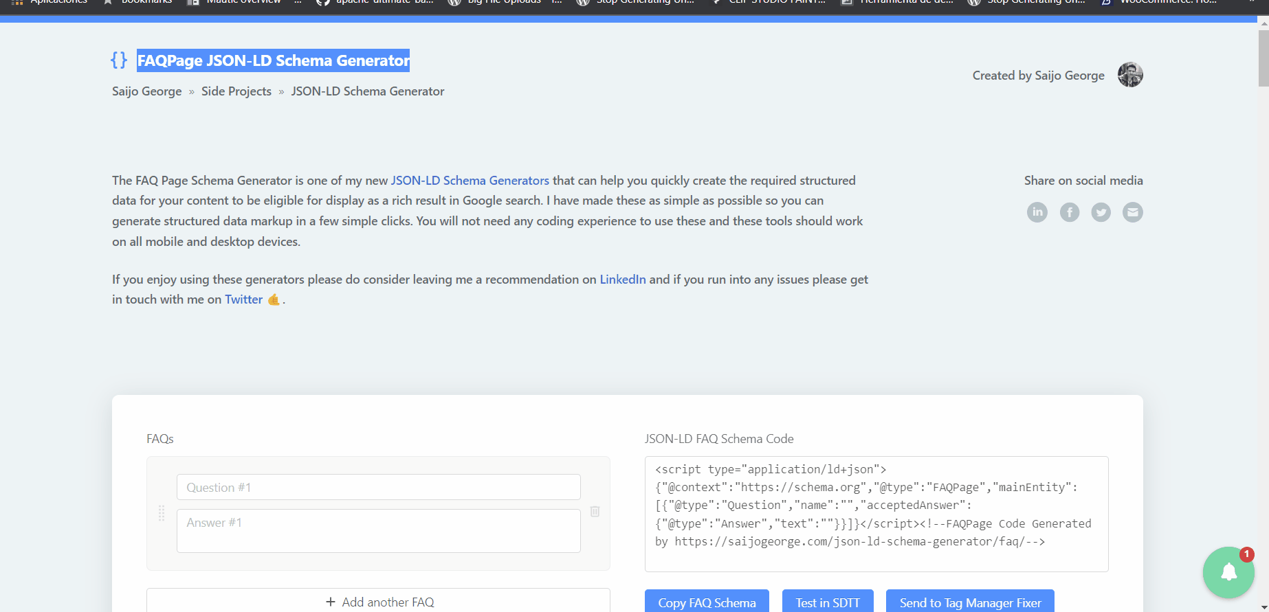 Para este caso utilizaremos la página de Schema generator. Una vez ingresamos veremos una interfaz similar a los plugins que hemos visto previamente, donde debemos agregar nuestro título para la pregunta y el contenido que va a dar explicación a esta misma.