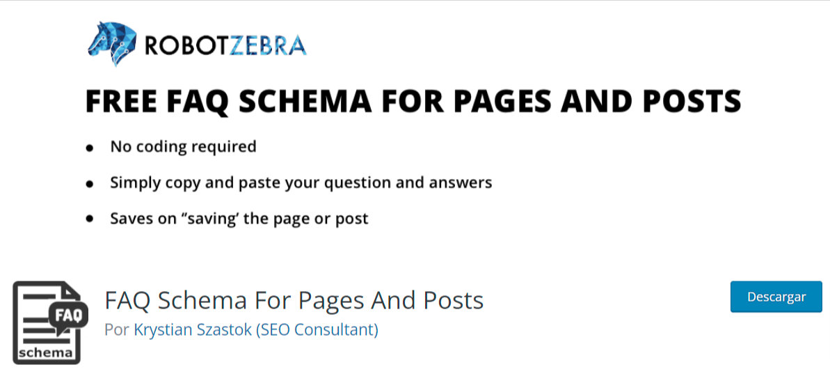 Otra posible opción para agregar los schema FAQ en nuestros WordPress es la del plugin FAQ Schema For Pages And Posts, cuando se trata de mejorar la visibilidad de nuestro sitio en los resultados de búsqueda, el marcado de datos estructurados, el FAQ Schema, se convierte en un aliado inestimable.