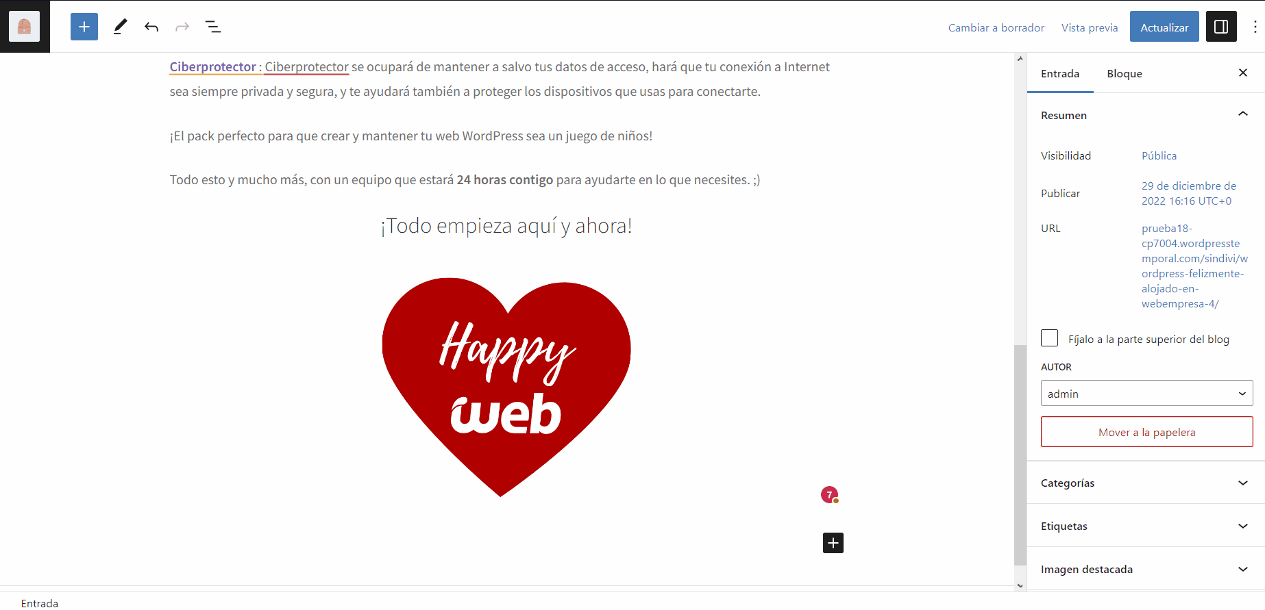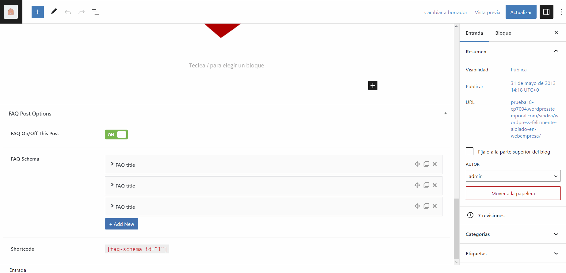 Luego de tener el plugin instalado y activado vamos a necesitar ingresar a una de las entradas o páginas en las que vamos a asignar nuestros FAQ para que sean tomados como parte del schema.