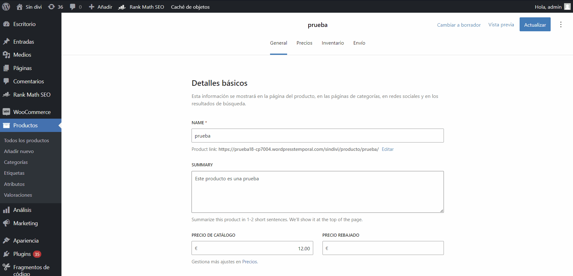 Precio rebajado: de igual forma también tenemos disponible un precio rebajado que es opcional, y dependerá de nosotros si aplicarlo o no.