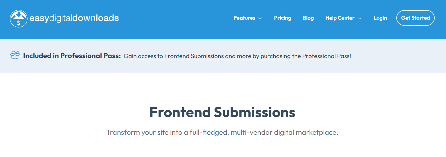 Este plugin puede transformar nuestro sitio en un mercado de varios vendedores, similar a cualquier plataforma conocida de forma mundial como es el caso de Amazon o eBay. Si estamos buscando transformar nuestro sitio web, impulsado por Easy Digital Downloads, en un mercado multi-vendedor completo, entonces el plugin Frontend Submissions es nuestro aliado perfecto.