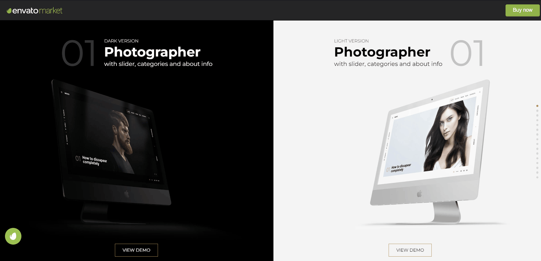 Este tema tiene algunos de los mejores estilos para fotografías, o portafolios de fotografías. Este proporciona múltiples diseños de portafolio y blogs en WordPress creados con cogidos que son optimizados para el buen posicionamiento SEO.