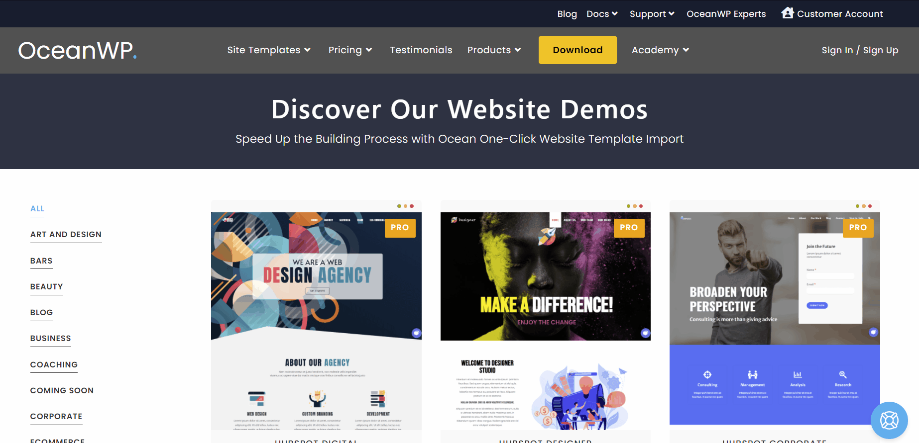 Pero, ¿qué hace que OceanWP sea especial? Su enfoque en la profesionalidad. Aunque la versión gratuita ya ofrece un amplio abanico de características, si necesitásemos la versión premium esta cuenta con aún más herramientas y extensiones útiles. Y no solo eso, el soporte de OceanWP es conocido por ser de primera clase y responder con rapidez a las consultas.