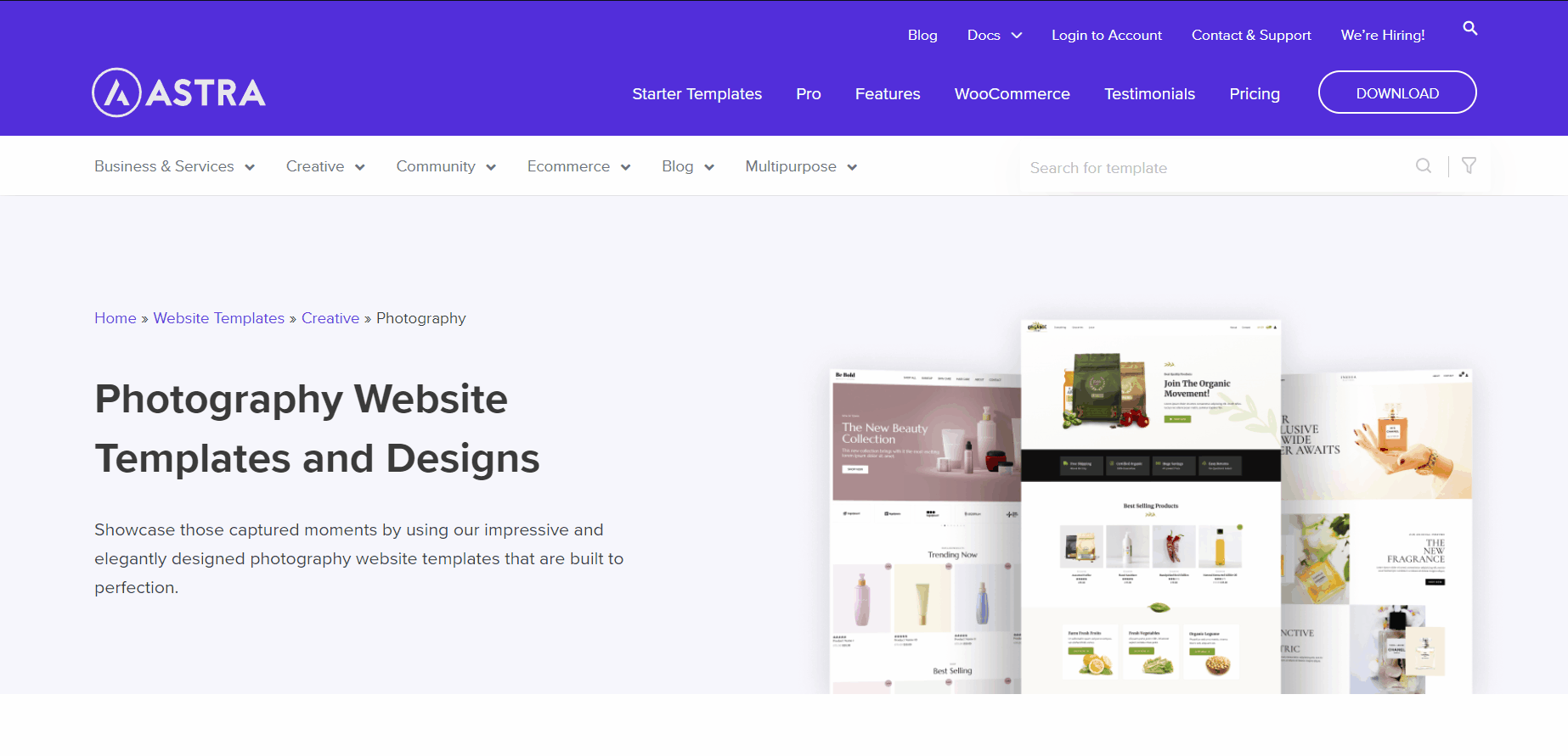 Si somos un fotógrafo buscando una plantilla que permita destacar y mostrar el trabajo de la mejor manera posible, Astra podría ser la opción ideal para nosotros. Con su amplia gama de características y su enfoque en la personalización, es una excelente elección para aquellos que desean un sitio web de fotografía profesional y atractivo.