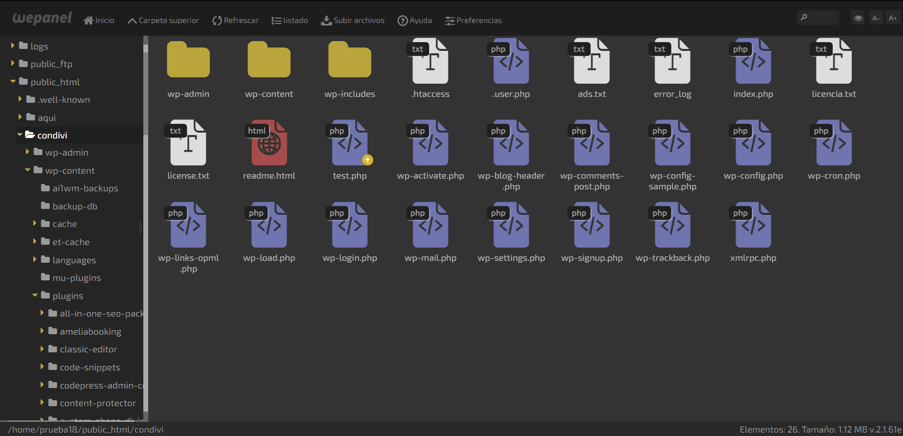 Si no podemos ingresar o eliminar el plugin o tema también podemos hacerlo desde nuestro wepanel o CPanel, aún podemos eliminarlo de forma sencilla. Solo necesitamos seguir esta ruta: Administrador de archivos > Public_html > Dominio > wp-content. Una vez aquí, buscamos themes si se trata de un tema o plugins si es un plugin y elimínalos desde esta ubicación.