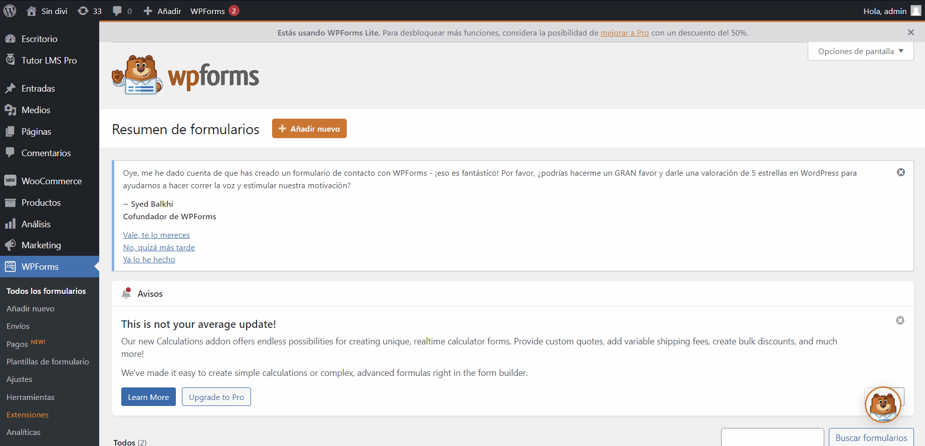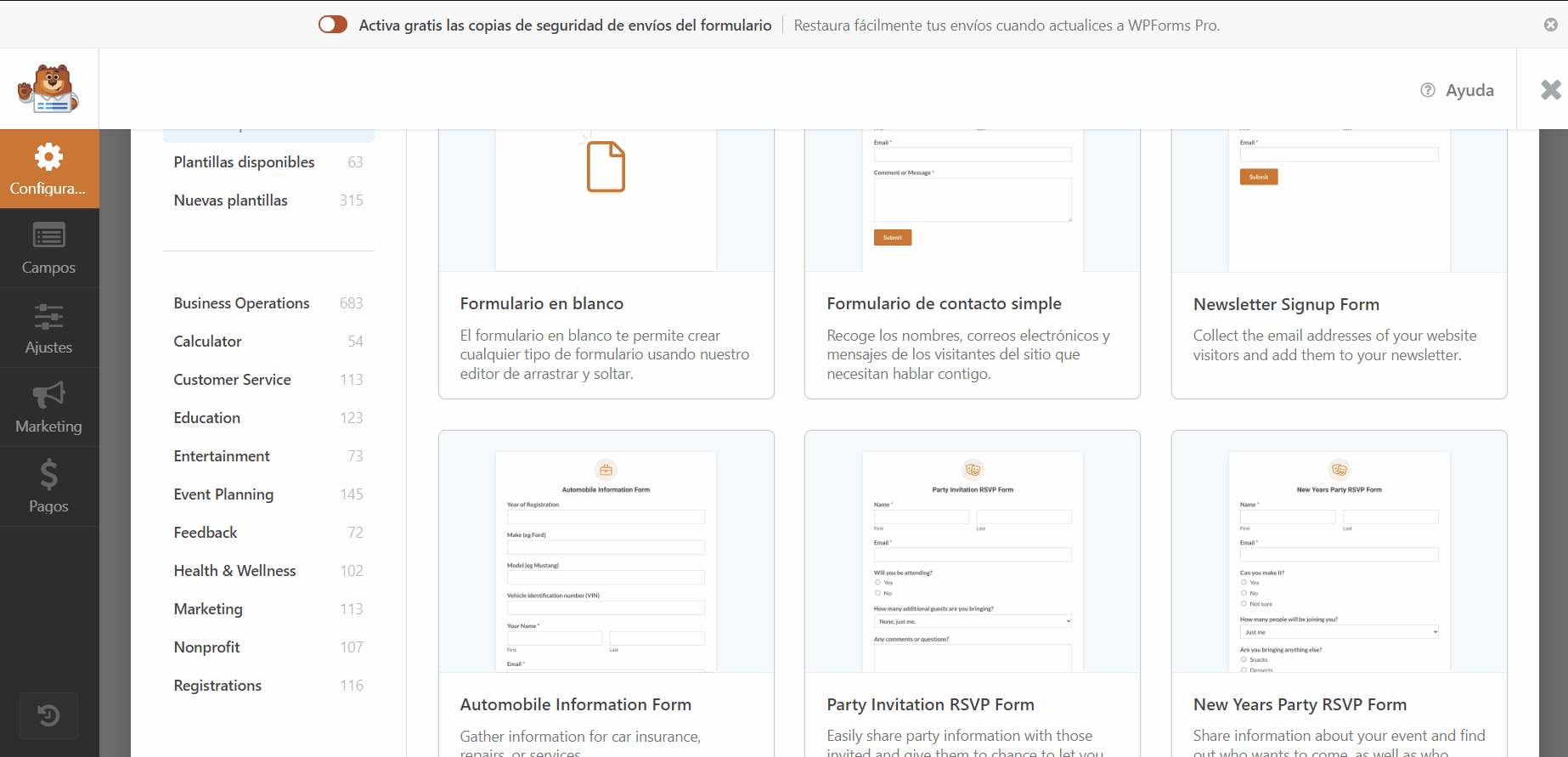 Para esta guía y debido a la facilidad de conexión que ofrece utilizaremos el plugin de WPForms, si bien este plugin de WordPress cuenta con una versión gratuita, es en la versión de pago o PRO que contamos con la herramienta de conexión directa con otra herramienta que vamos a ver más adelante.