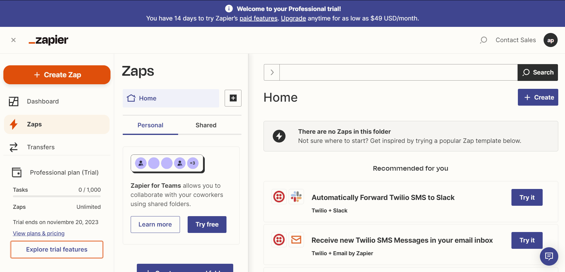 Crear un Zap en Zapier para enviar un SMS