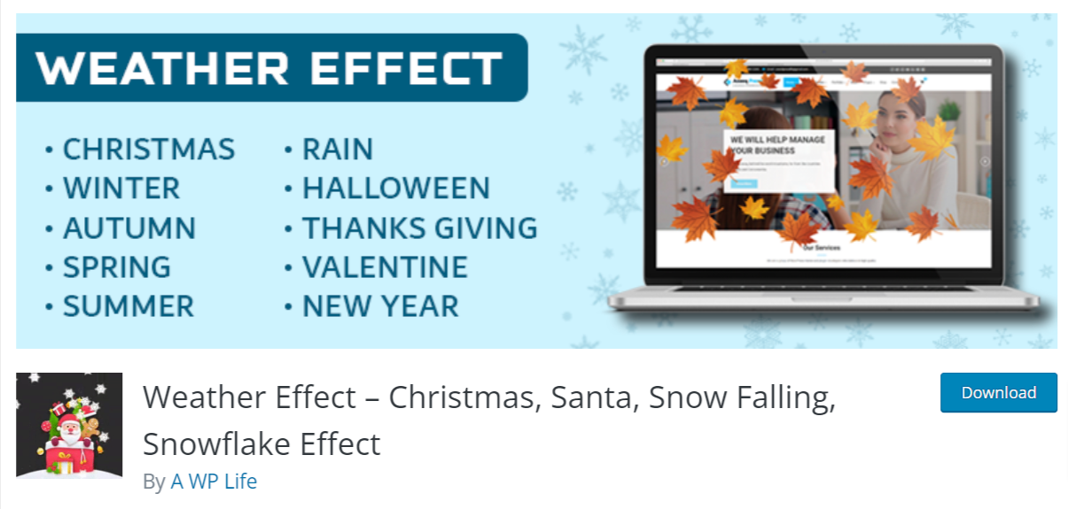 Plugin Weather Effect – Christmas, Santa, Snow Falling, Snowflake Effect