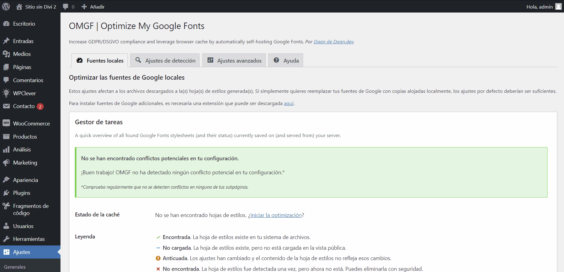 La instalación y configuración de OMGF es sencilla. Podemos descargar y realizar una instalación de plugin en WordPress desde el repositorio. Una vez activado, OMGF comenzará a buscar de forma automática las fuentes de Google en nuestro sitio y te permitirá gestionarlas a través de su pantalla de configuración en el dashboard de WordPress.