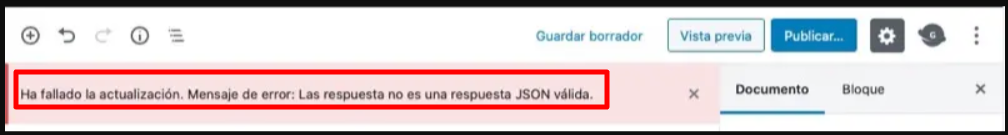 1. Problemas de conectividad con la API REST: WordPress utiliza la API REST para comunicarse con el servidor y gestionar el contenido. Si hay problemas en esta conexión, como configuraciones incorrectas o restricciones de seguridad en WordPress, el editor no puede recibir una respuesta válida en formato JSON.