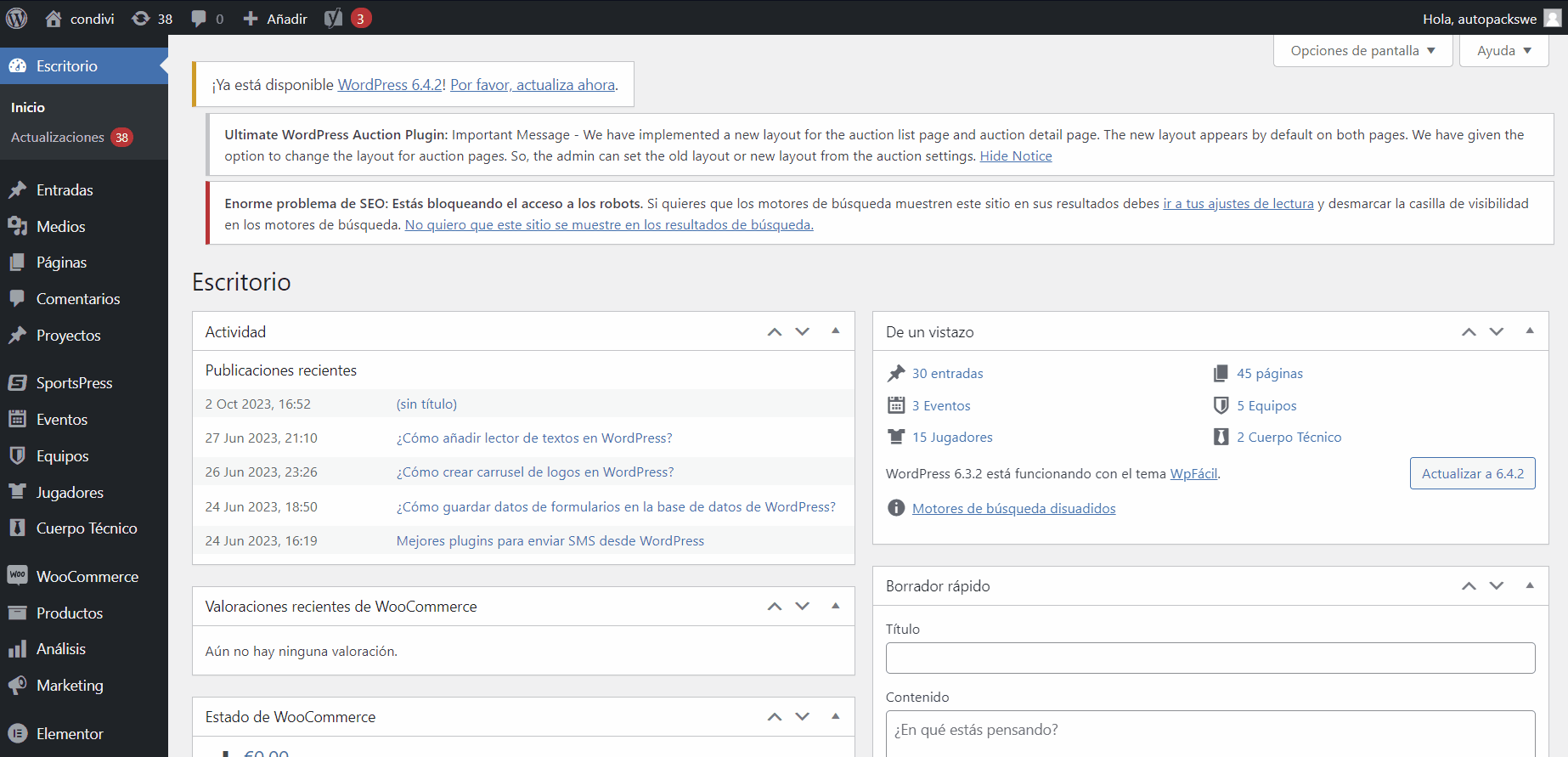 - En cuanto notemos que hay actualizaciones disponibles para los plugins y temas.