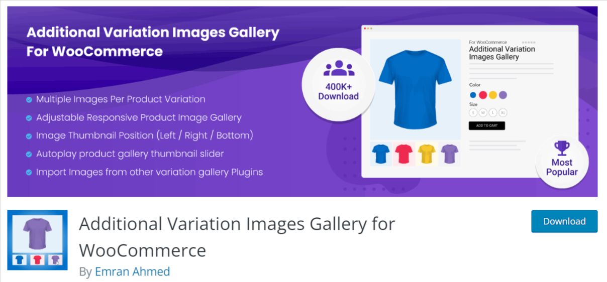 El plugin Additional Variation Images Gallery for WooCommerce es un plugin gratuito que nos ayudara en gran medida a realizar lo que queremos de mostrar diferentes conjuntos de imágenes a los visitantes cuando cambian a las diferentes variaciones del producto como color, estilo y tamaño.