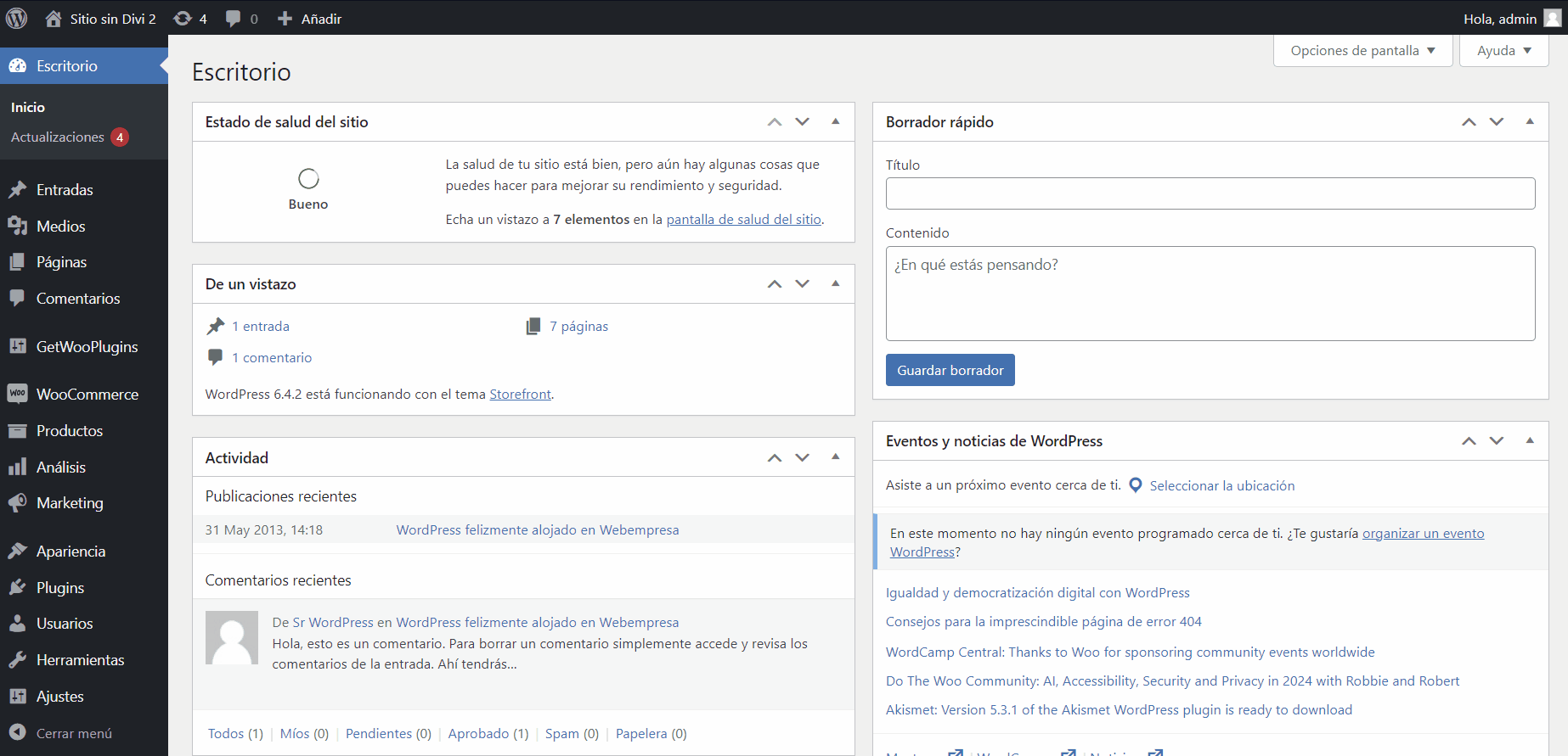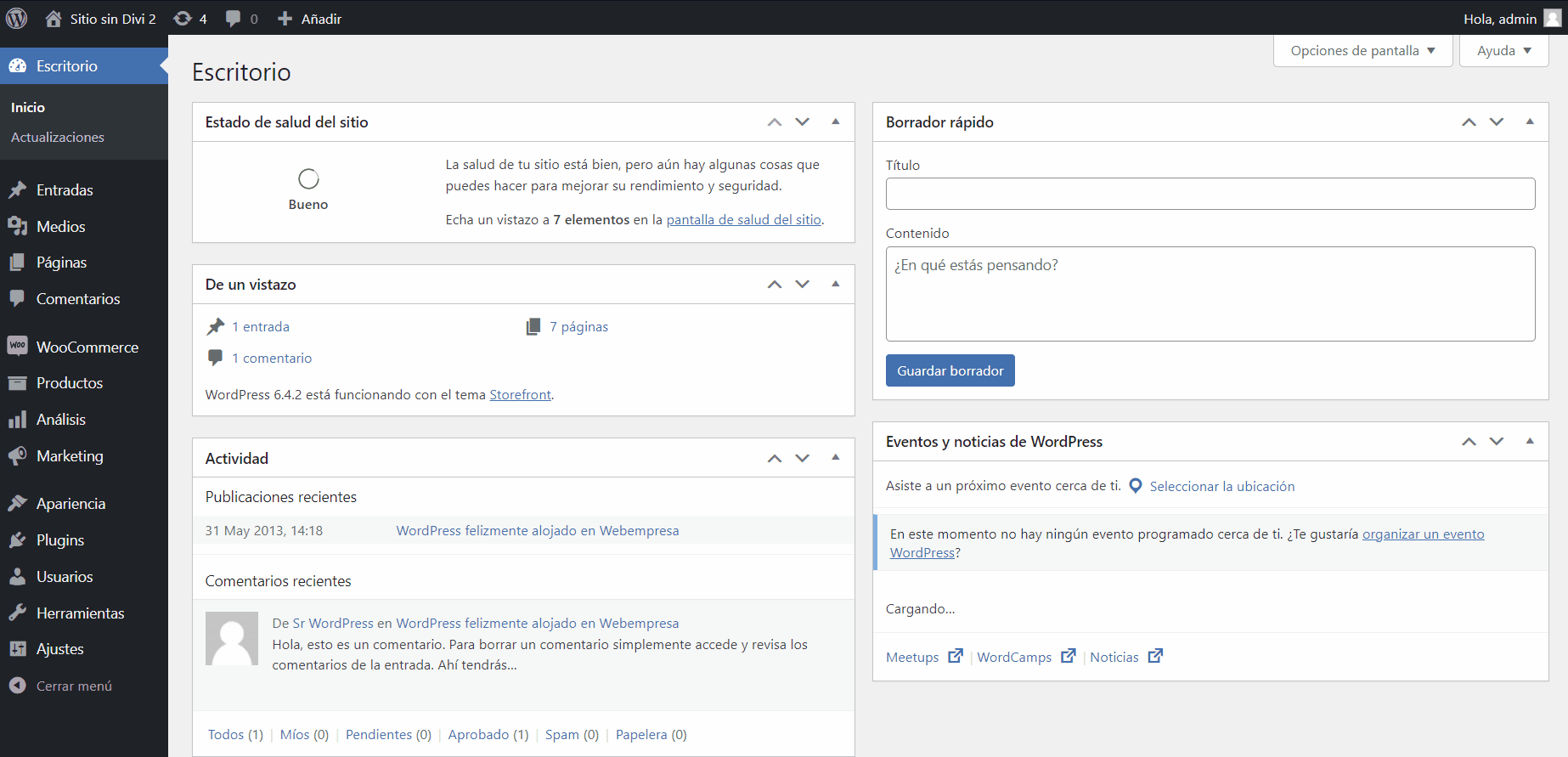 - Ingresamos a nuestro dashboard de WordPress
