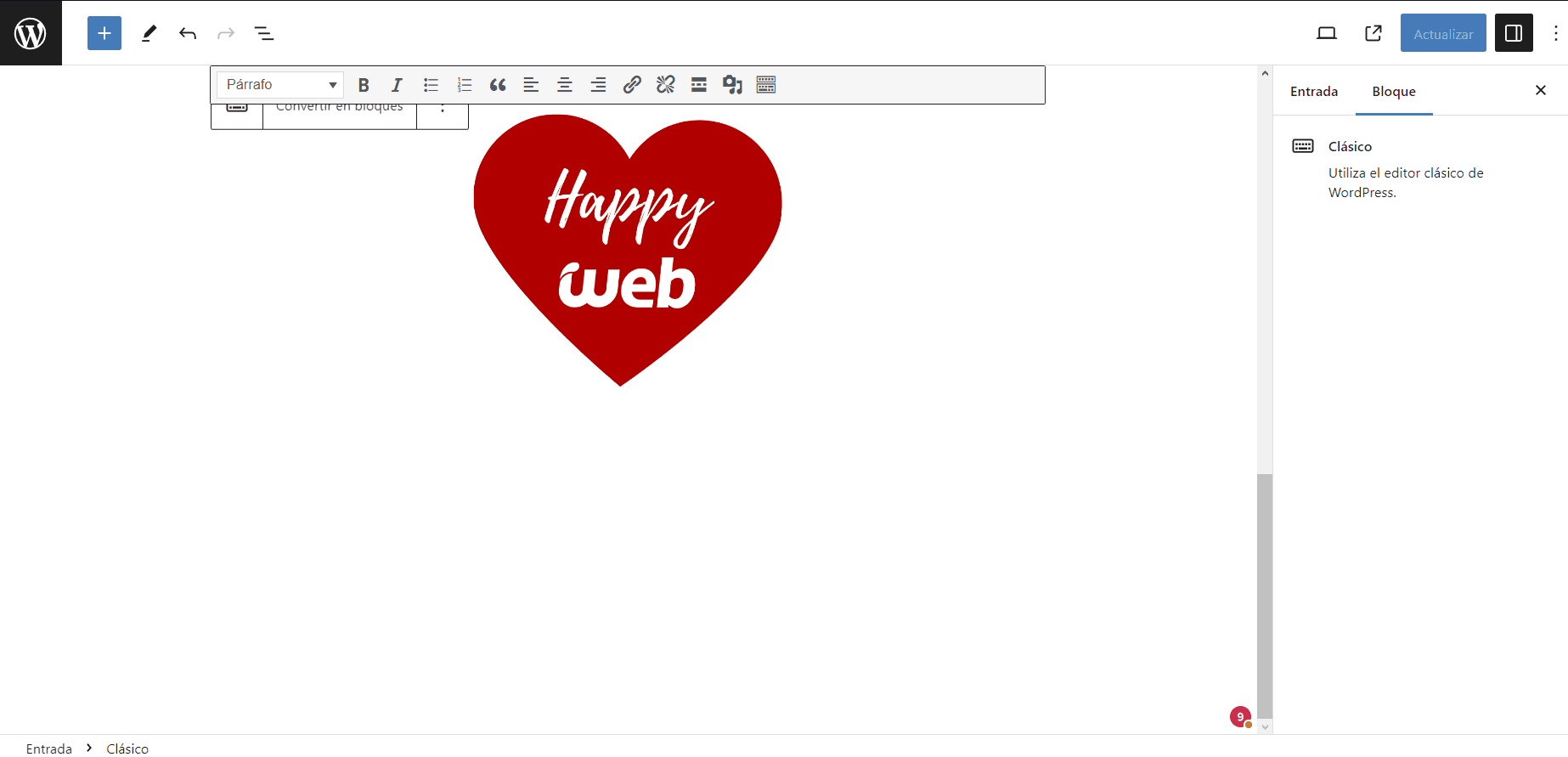 Luego de que lo agregamos tal como lo hicimos con el ejemplo anterior del editor de Gutenberg solo tendremos que actualizar los cambios o publicar la página.