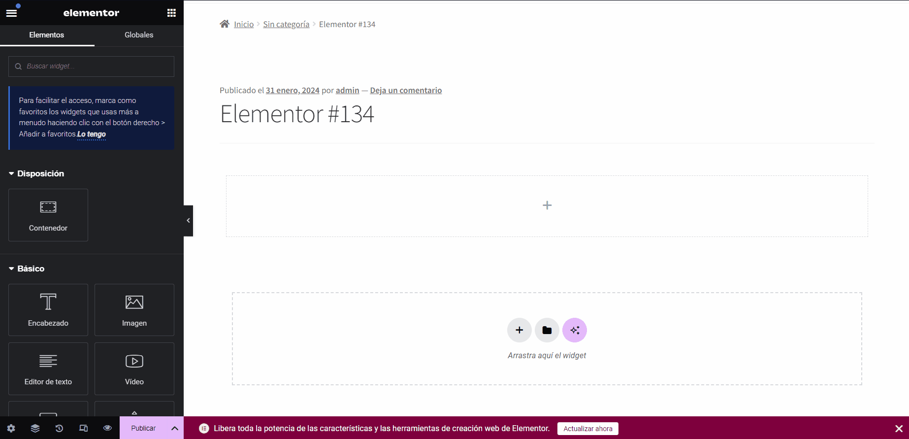 Después de insertarlo hay que recordar hacer clic en el botón tanto de publicar página como actualizarla en caso de que ya este publicado, esto en la parte superior derecha del todo, una vez hecho esto tendremos un widget incorporado en nuestro sitio con Gutenberg.