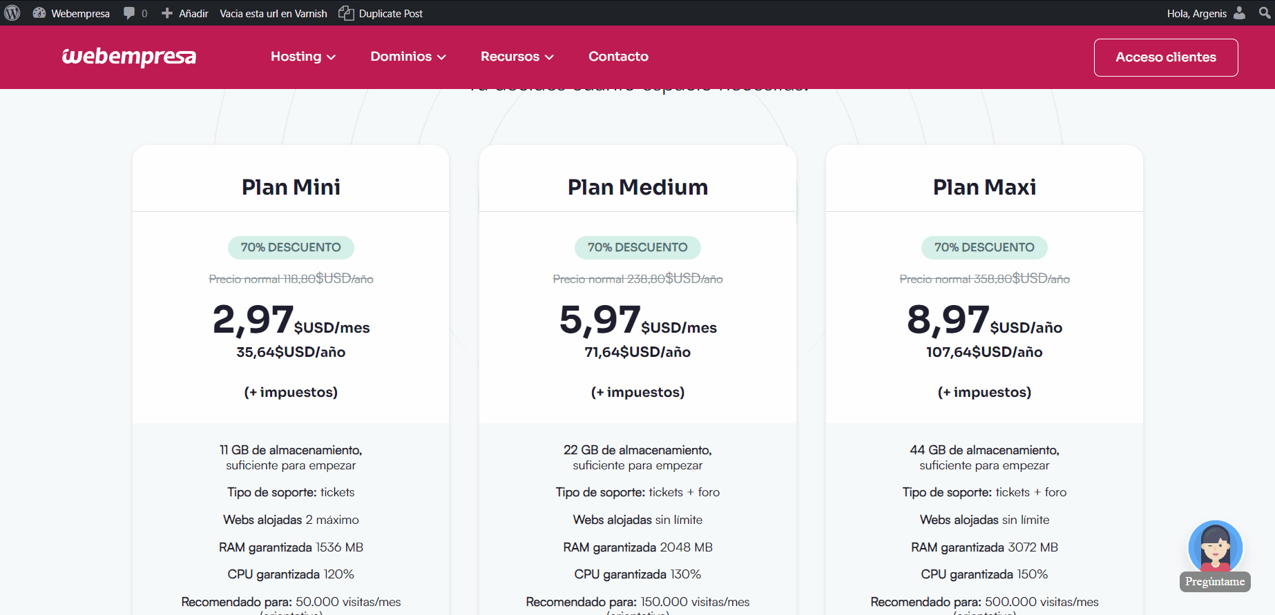 Webempresa ofrece hosting optimizado para WordPress, garantizando velocidad, seguridad y soporte técnico especializado, con planes que se adaptan a diferentes necesidades y presupuestos.