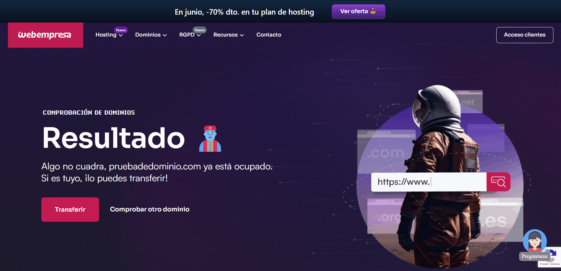 Resaltemos que estos pasos son luego de tener comprado el nuevo dominio y tenerlo ya en nuestro hosting de Webempresa, ya sea apuntado o bien adquirido con nosotros. Luego de esto tendremos la posibilidad de realizar una instalación nueva de WordPress en este dominio.