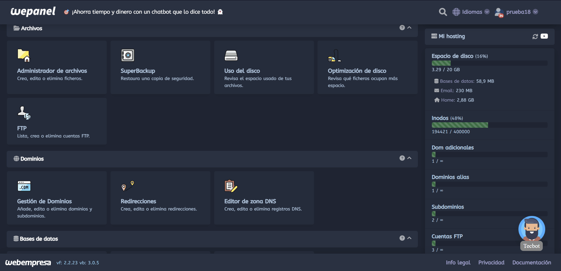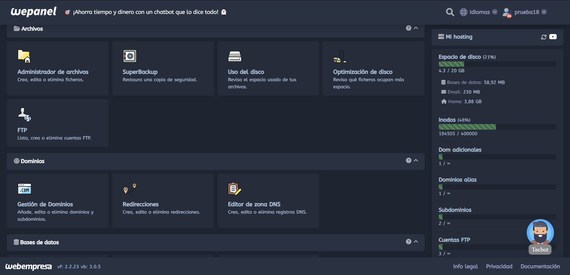 Esta opción no cambia mucho de la primera que hemos visto, solo que cambiamos la herramienta que vamos a utilizar una vez nos encontramos en nuestro wepanel, en todos nuestros planes contamos con una herramienta de backups llamada superbackup.