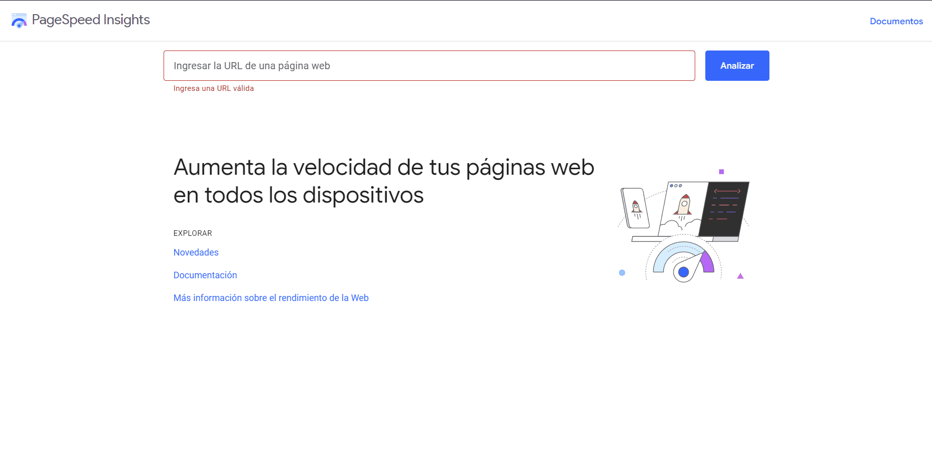 La herramienta que utilizaremos para medir los factores de LCP, INP y CLS es la de Google pagespeed insights, esta es una herramienta que podemos utilizar de manera gratuita para poder verificar y analizar el rendimiento del sitio web mediante la auditoria de la URL que indiquemos en el mismo, y así poder identificar las mejoras que le podemos hacer a nuestro sitio.