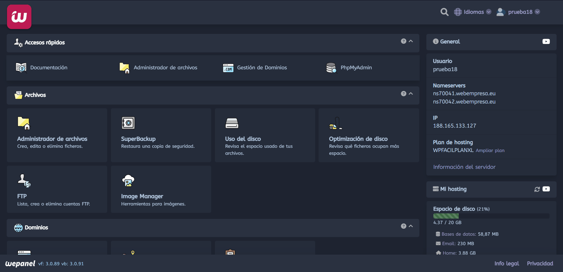 El primer paso es iniciar sesión en el WePanel de nuestro hosting web. Por lo general, podemos acceder a él ingresando nuestra cuenta e ingresamos a nuestro servicio contratado. Una vez dentro, encontraremos una serie de herramientas y opciones para gestionar nuestro sitio web.