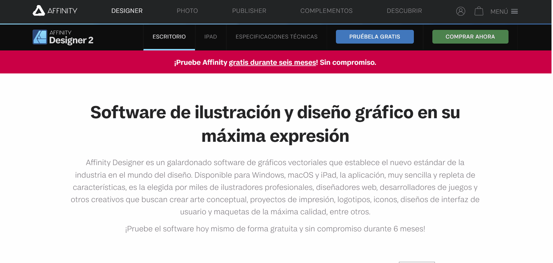 Ideal para: diseñadores web gráficos que buscan una solución todo en uno para diseño de vectores, edición de imágenes y maquetación de proyectos.