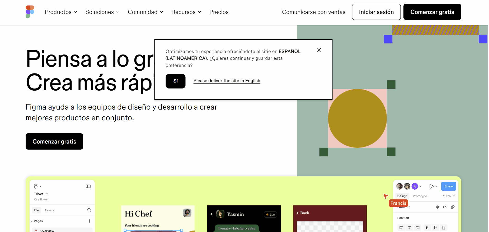 Esta característica ha hecho que Figma se convierta en la opción preferida de muchas agencias y equipos distribuidos, ya que elimina las barreras de enviar archivos de un lado a otro y asegura que todos estén siempre en la misma página.