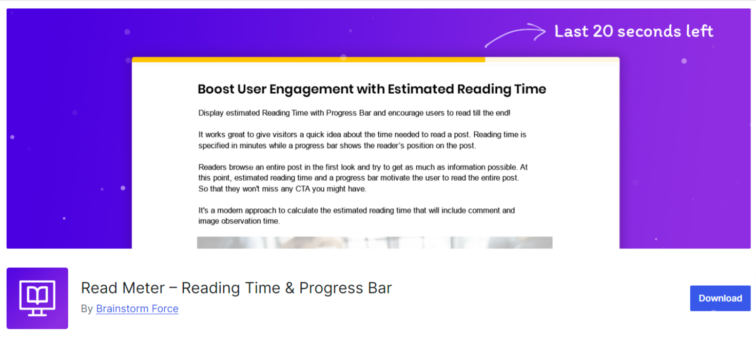 Read Meter es un plugin gratuito para WordPress que permite mostrar el tiempo estimado de lectura de tus entradas, acompañado de una barra de progreso. Esta función ofrece a los visitantes una idea clara del tiempo que invertirán en leer un artículo, incentivándolos a permanecer en la página hasta el final.