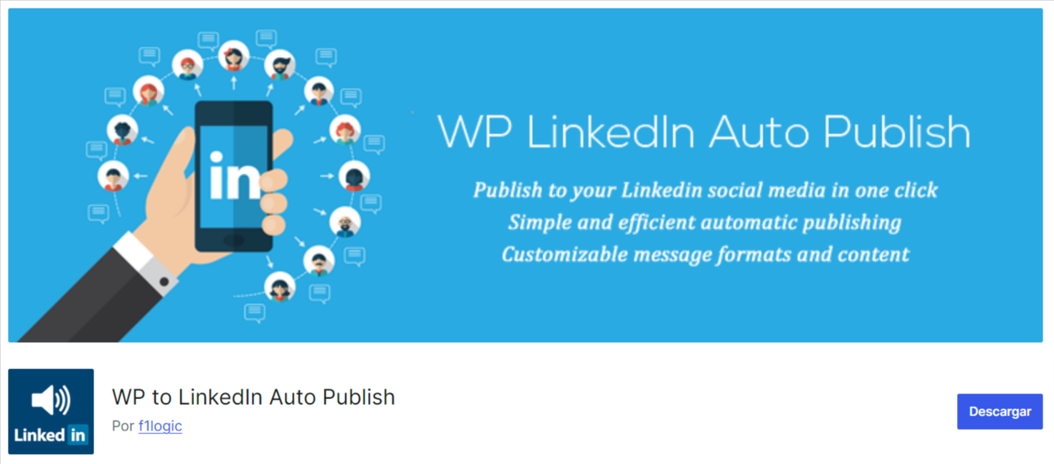 Si buscamos una forma sencilla y automatizada de compartir nuestras publicaciones en LinkedIn, WP LinkedIn Auto Publish es una de las mejores opciones. Este plugin nos permite conectar nuestro sitio de WordPress con LinkedIn para que, cada vez que publiquemos una entrada en el blog, esta se publique de forma automática en nuestro perfil o página de empresa.