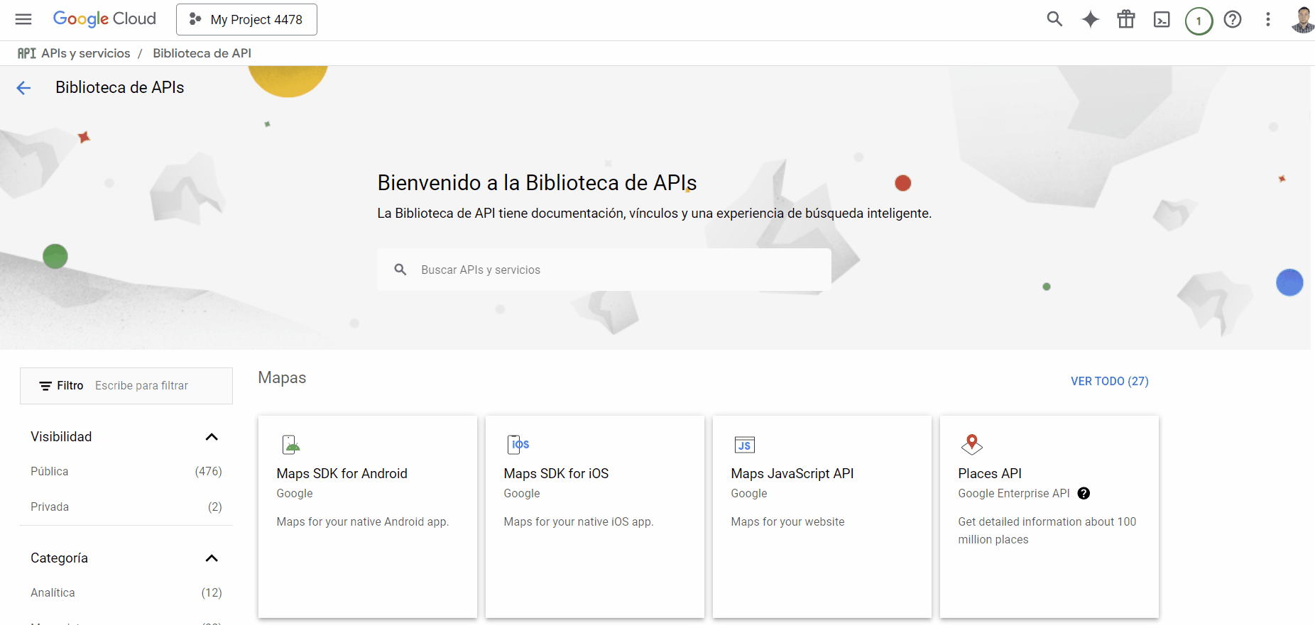 Ahora estaremos viendo la consola de Google, que es desde donde se controla el acceso a sus aplicaciones. Arriba a la izquierda, donde indica el nombre de nuestro proyecto, en caso de no tener nada creado nos indicara para crear uno nuevo. Hacemos clic en él para crear nuestro proyecto en caso de no tenerlo.