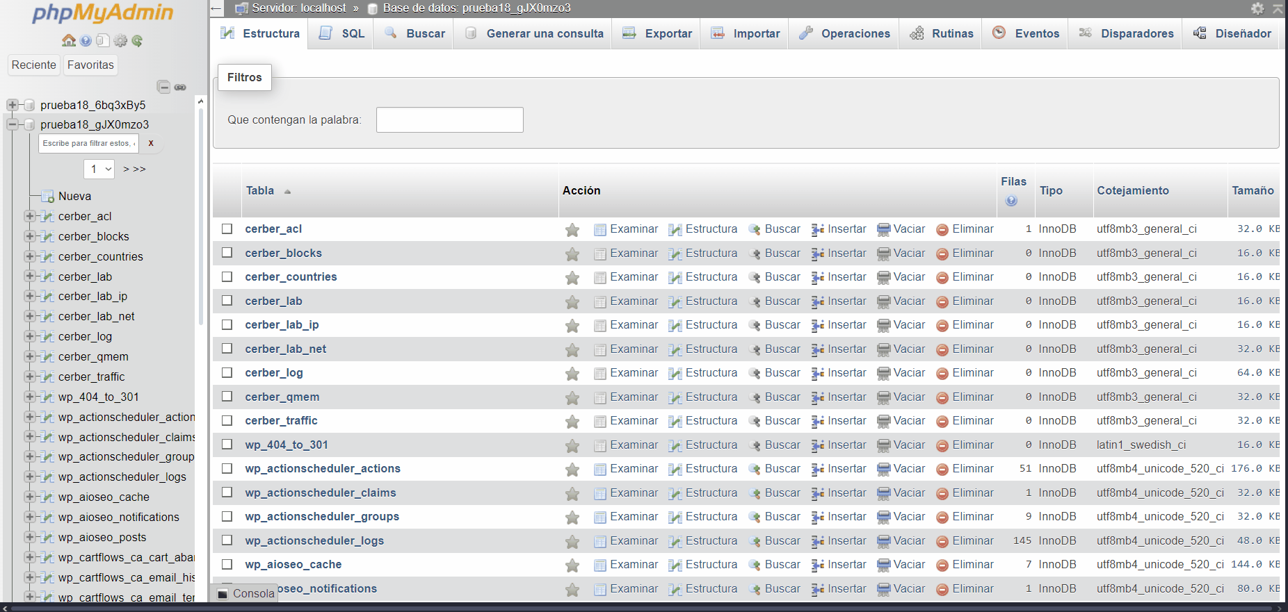 - Si el problema persiste, acceder a phpMyAdmin y comprobar que la base de datos fue importada de forma correcta.