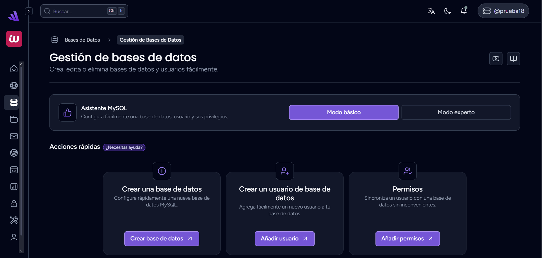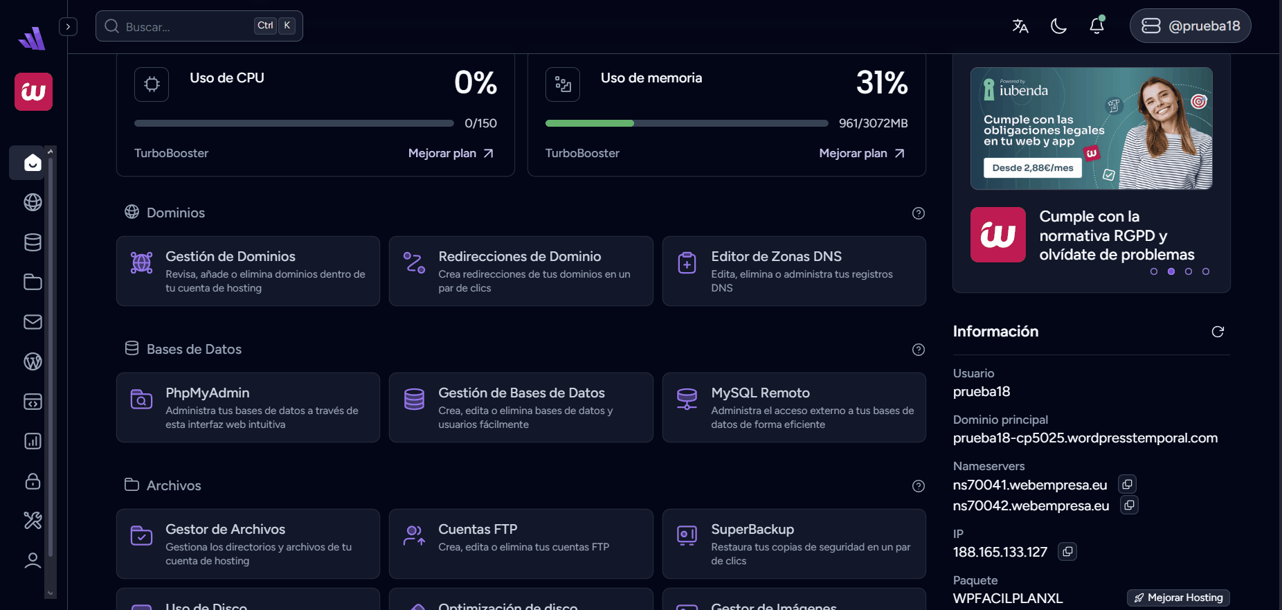 Siguiendo con el ejemplo, dentro de tu panel de alojamiento web, donde tienes la web a migrar, ahora tienes que exportar la base de datos de WordPress, aunque para ello primero es importante que sepas cómo se llama la base de datos que debes descargar.