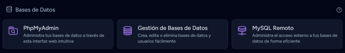 - Gestión de bases de datos: Para crear, eliminar y cambiar contraseñas de las bases de datos.