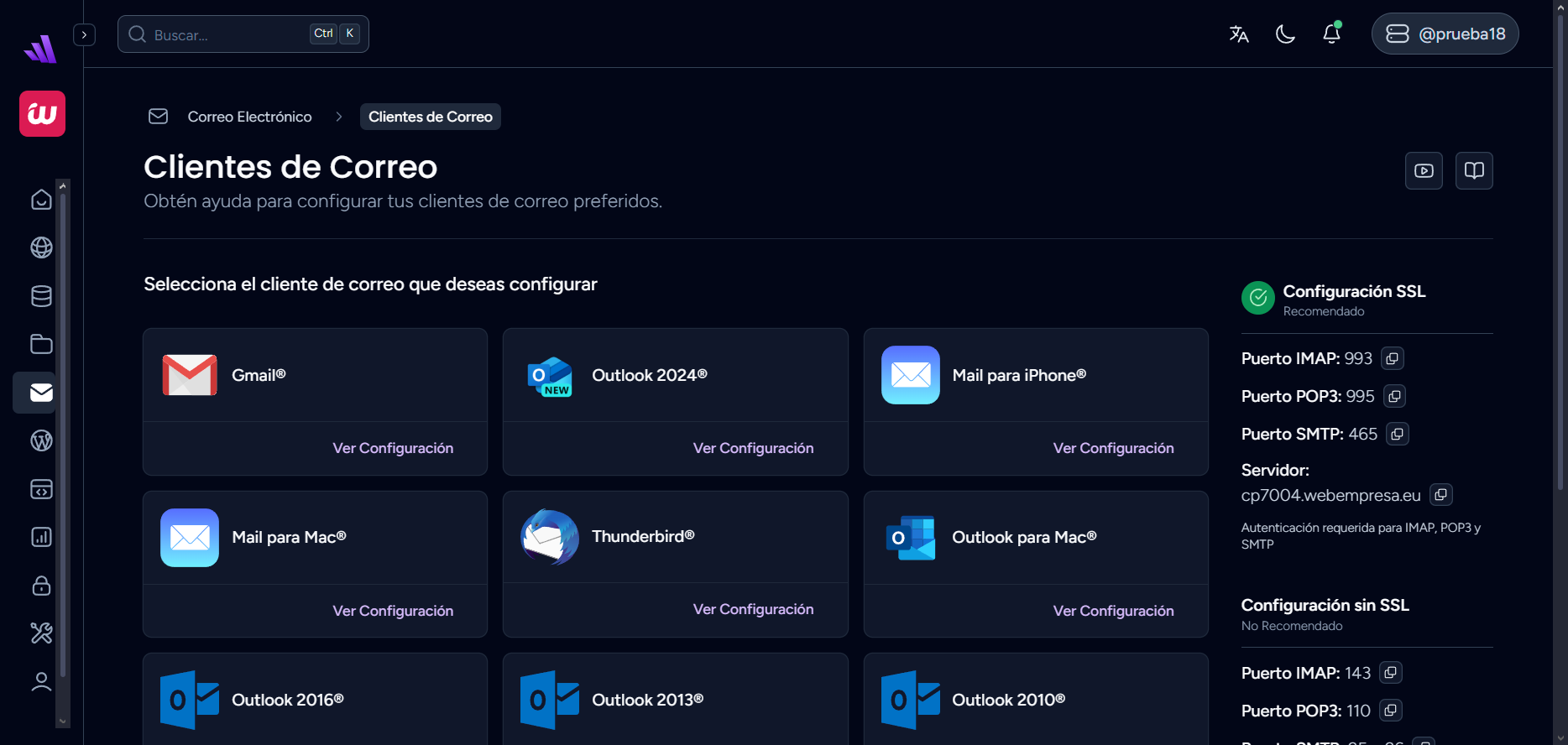 Si usamos clientes de correo como Outlook, Thunderbird o Mail de Mac, debemos asegurarnos de actualizar la configuración del servidor entrante y saliente una vez completada la migración.