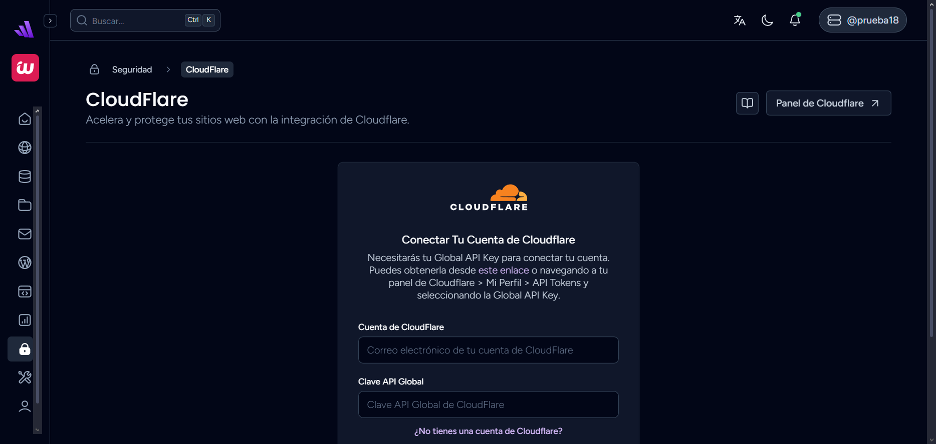 Cloudflare es una de las herramientas más potentes que podemos gestionar desde WePanel para mejorar la seguridad y el rendimiento de nuestro sitio web. Se trata de un CDN (Content Delivery Network) que actúa como intermediario entre nuestros visitantes y nuestro servidor, permitiendo una carga más rápida de la web y protegiéndola contra ataques maliciosos.