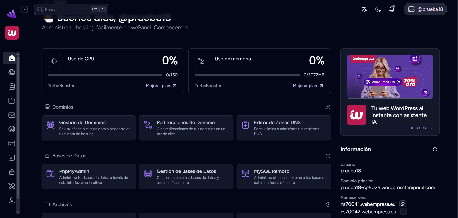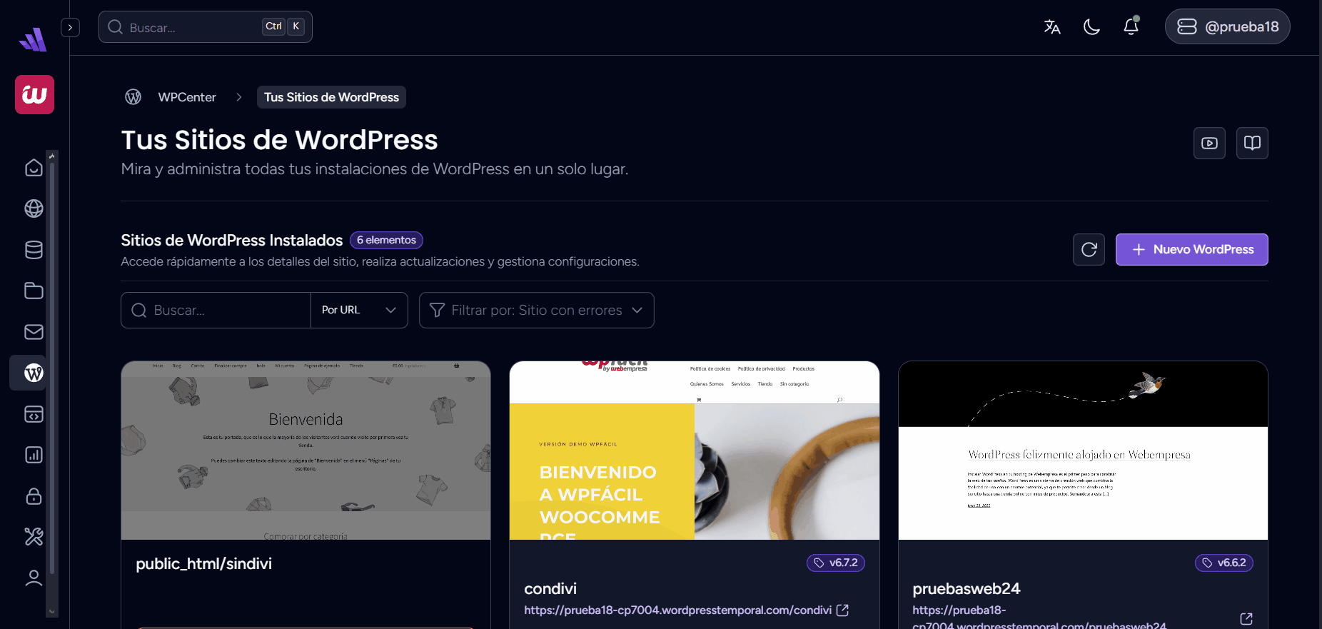 Si gestionamos más de un sitio o queremos personalizar la estructura de nuestros dominios, WePanel nos ofrece todas las herramientas necesarias para hacerlo de manera fácil y rápida.