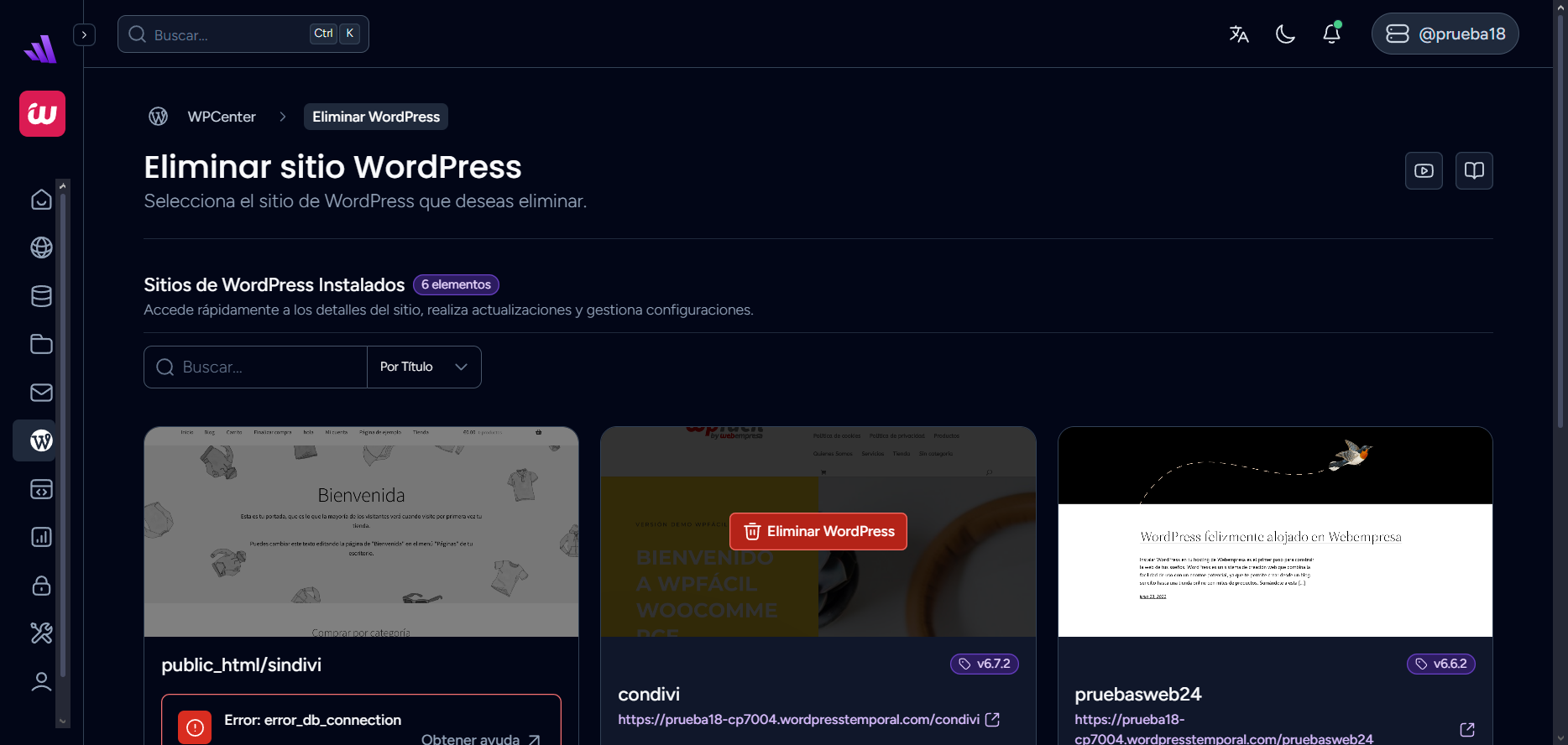 La idea es que dicho panel sirva para que los clientes de Webempresa puedan gestionar todas sus webs, alojadas en Hosting, de manera centralizada, tanto para un solo sitio web, como para varias webs creadas con WordPress y otros gestores de contenidos o scripts basados en PHP.