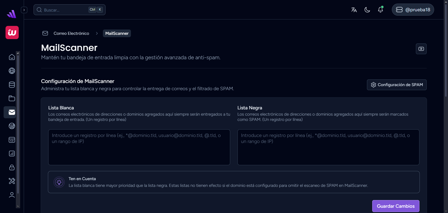 Desde WePanel, podemos administrar esta herramienta y ajustar las reglas según las necesidades de nuestro sitio.