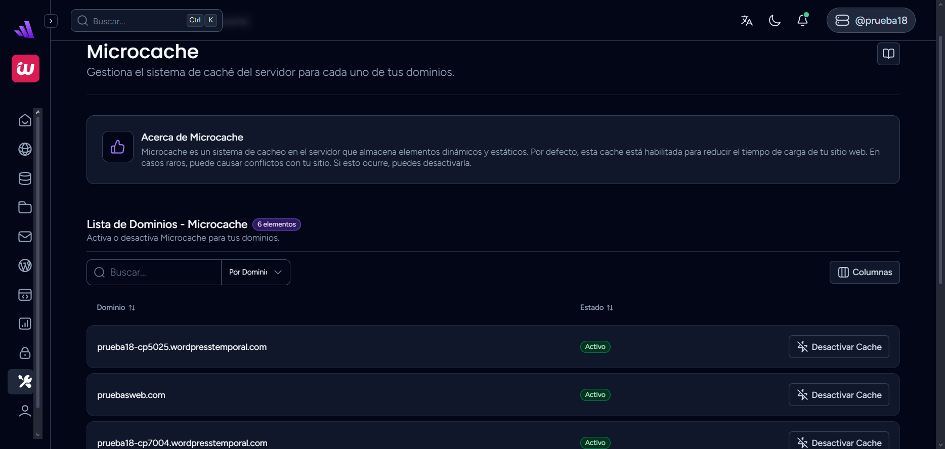El Microcache es una función dentro de WePanel que complementa a la caché tradicional, almacenando elementos por cortos periodos de tiempo y renovándolos con rapidez. Es ideal para sitios con contenido que cambia con frecuencia, como tiendas online, foros o blogs con comentarios en tiempo real.