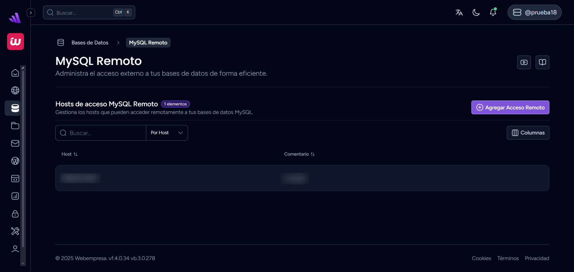 - MySQL remoto: Por si necesitas acceso remoto a una determinada base de datos desde un servicio externo.