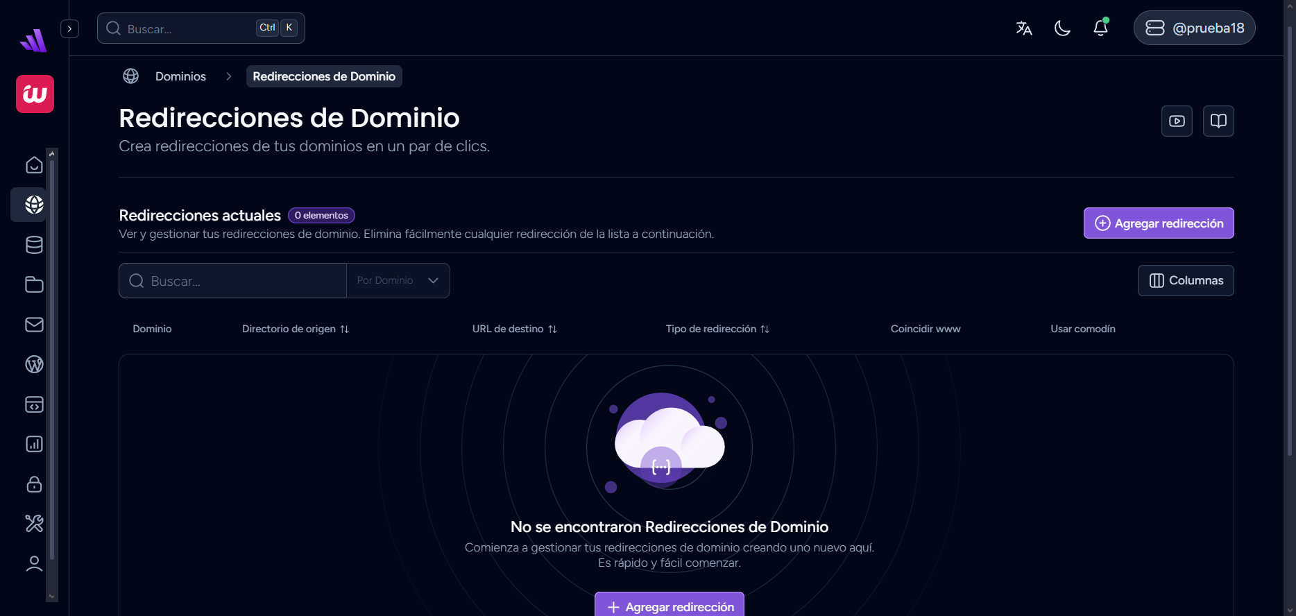 La sección de Dominios en WePanel nos permite gestionar todos los nombres de dominio asociados a nuestro hosting. Aquí podemos agregar, configurar o redirigir dominios para asegurarnos de que la web esté de forma correcta enlazada con la URL deseada.