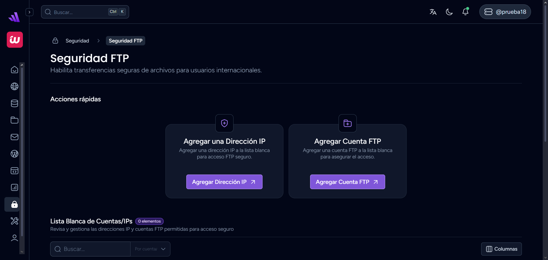 El acceso FTP (File Transfer Protocol) es fundamental para la gestión de archivos en nuestro sitio web, pero si no está bien configurado, puede convertirse en un punto vulnerable para ataques. WePanel nos permite reforzar la seguridad FTP con varias opciones clave.
