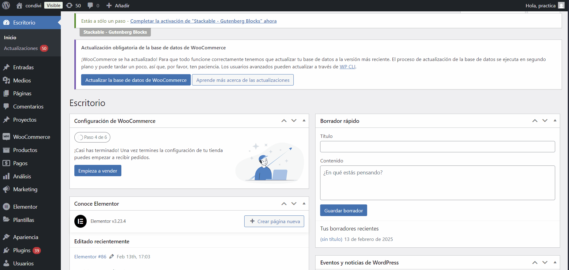 - Si el error desaparece, podemos reinstalar el plugin o tema desde el panel de administración.