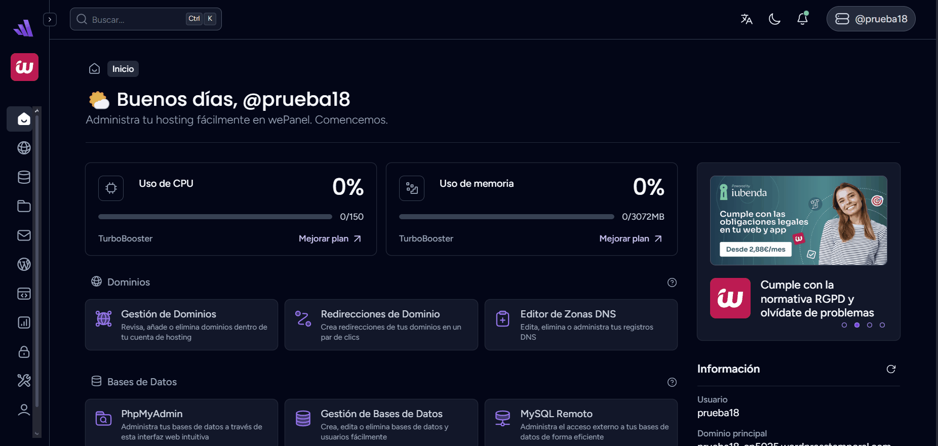 - Accedemos a los archivos del sitio a través de FTP o el Gestor de archivos de WePanel.